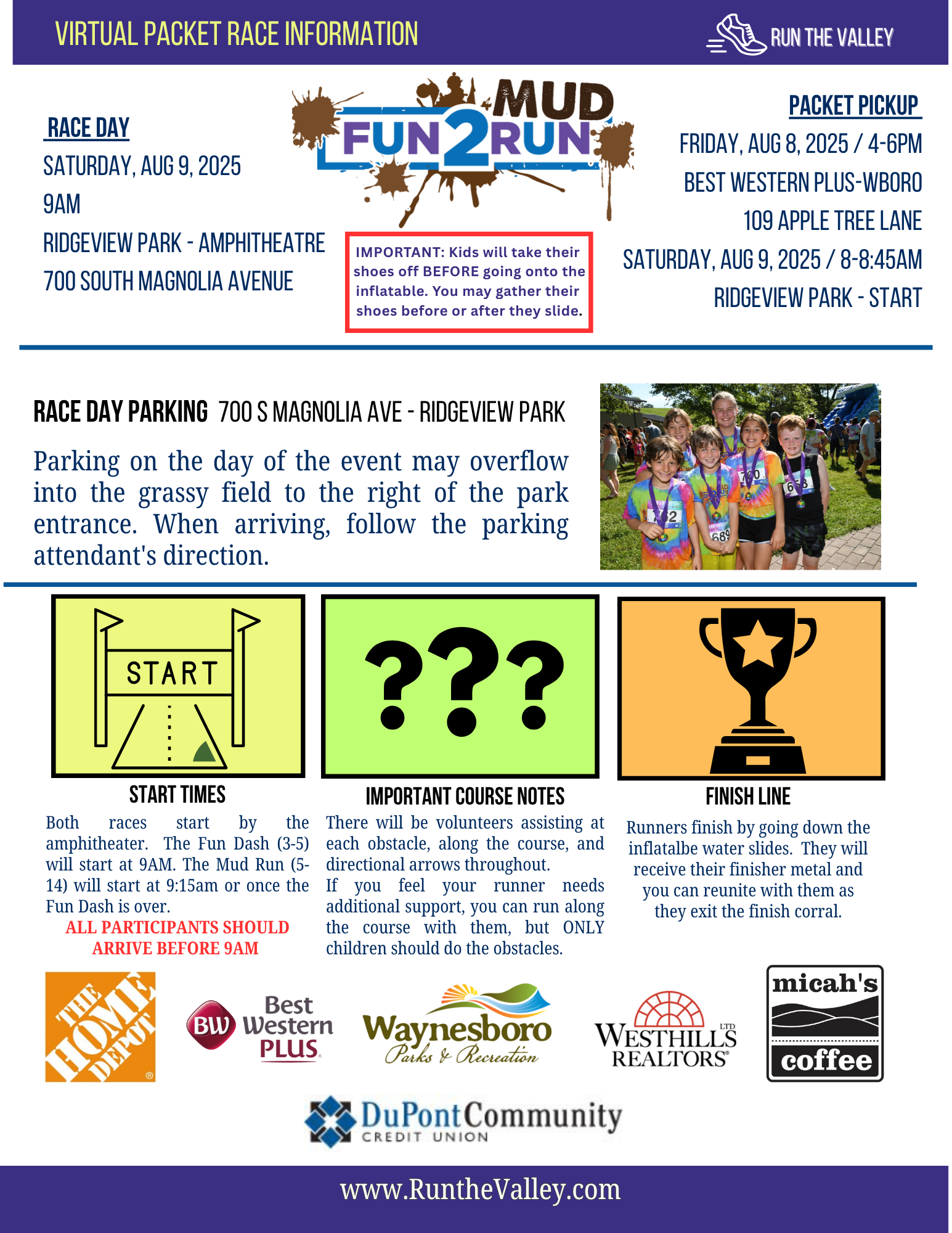 Fun Dash (little kids) will go first, followed by the Mud Run (big kids) immediately after